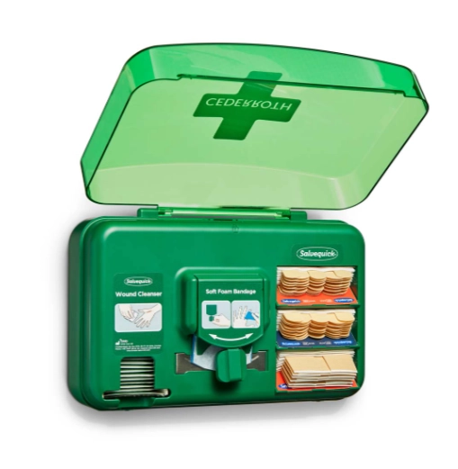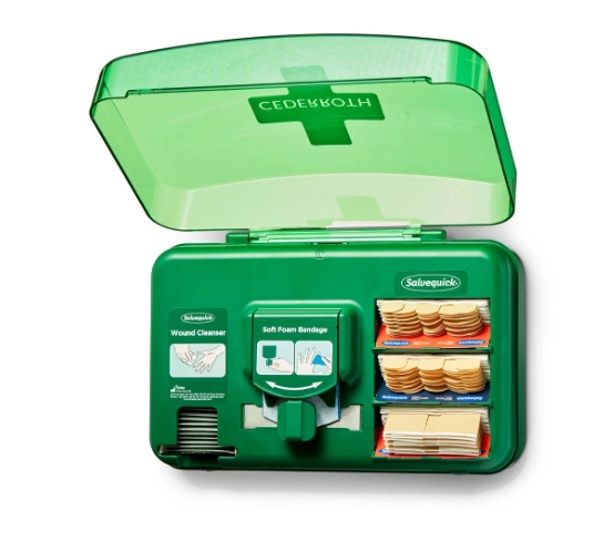 Niezbędne produkty do opatrywania drobnych ran w praktycznym dozowniku. Idealne uzupełnienie apteczek pierwszej pomocy. Zawiera Soft Foam Bandage Blue – samoprzylepny, bezklejowy plaster, który nie odkleja się nawet w wodzie. Dozownik zawiera również myjki do ran oraz wiele plastrów w różnych rozmiarach.