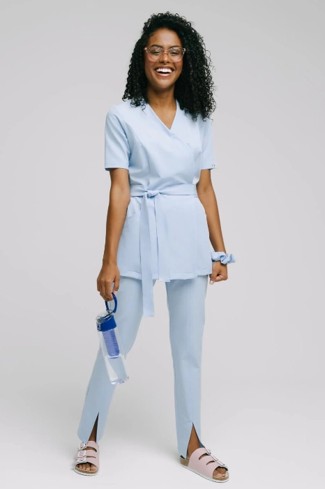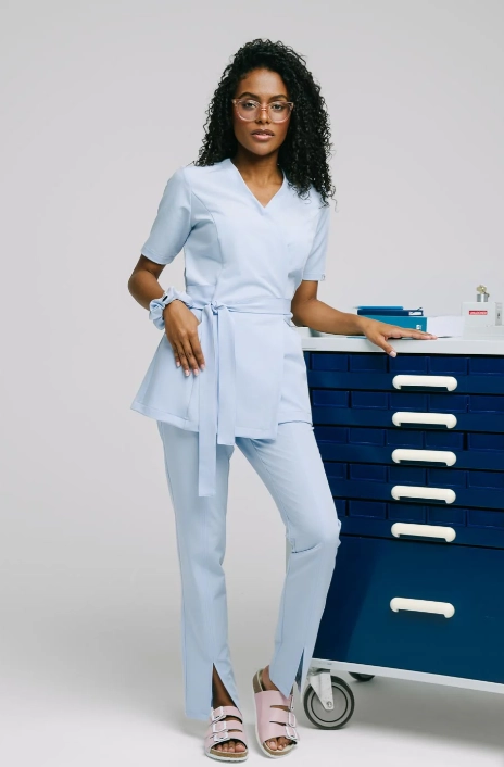 BLUZA MEDYCZNA DAMSKA WIĄZANA SPAWEAR ARIA BŁĘKITNY PASTELOWY