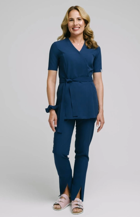 BLUZA MEDYCZNA DAMSKA WIĄZANA SPAWEAR ARIA GRANATOWY SZAFIROWY