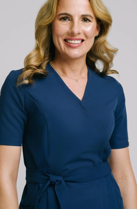Tunika wiązana Aria zapewni poczucie wygody, elegancji i kobiecości. Model idealnie spełni potrzeby pracowników służby zdrowia oraz beauty.
