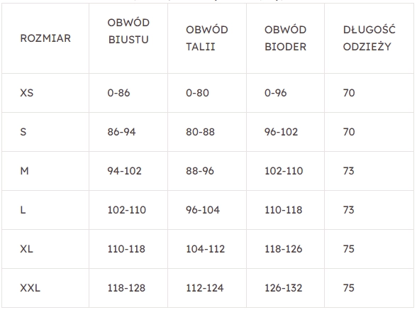 Podane wymiary są wymiarami osoby, podane w cm. Zmierz się i wybierz swój rozmiar. Pamiętaj, aby brać pod uwagę swój największy wymiar.