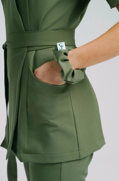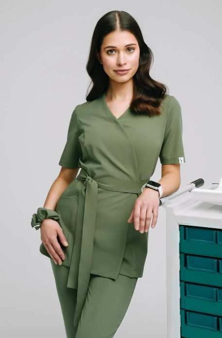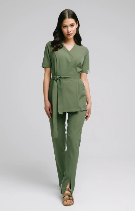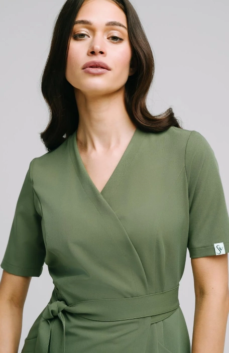 BLUZA MEDYCZNA DAMSKA WIĄZANA SPAWEAR ARIA ZIELONY OLIWKOWY
