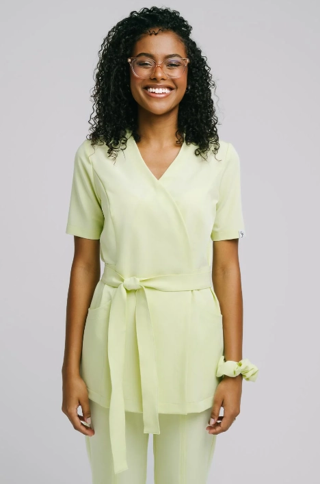 Tunika wiązana Aria zapewni poczucie wygody, elegancji i kobiecości. Model idealnie spełni potrzeby pracowników służby zdrowia oraz beauty.