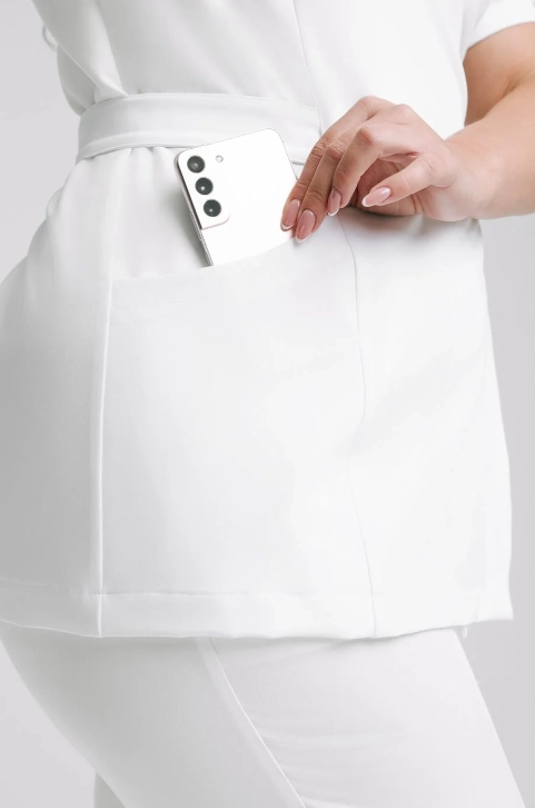 Tunika wiązana Aria zapewni poczucie wygody, elegancji i kobiecości. Model idealnie spełni potrzeby pracowników służby zdrowia oraz beauty.