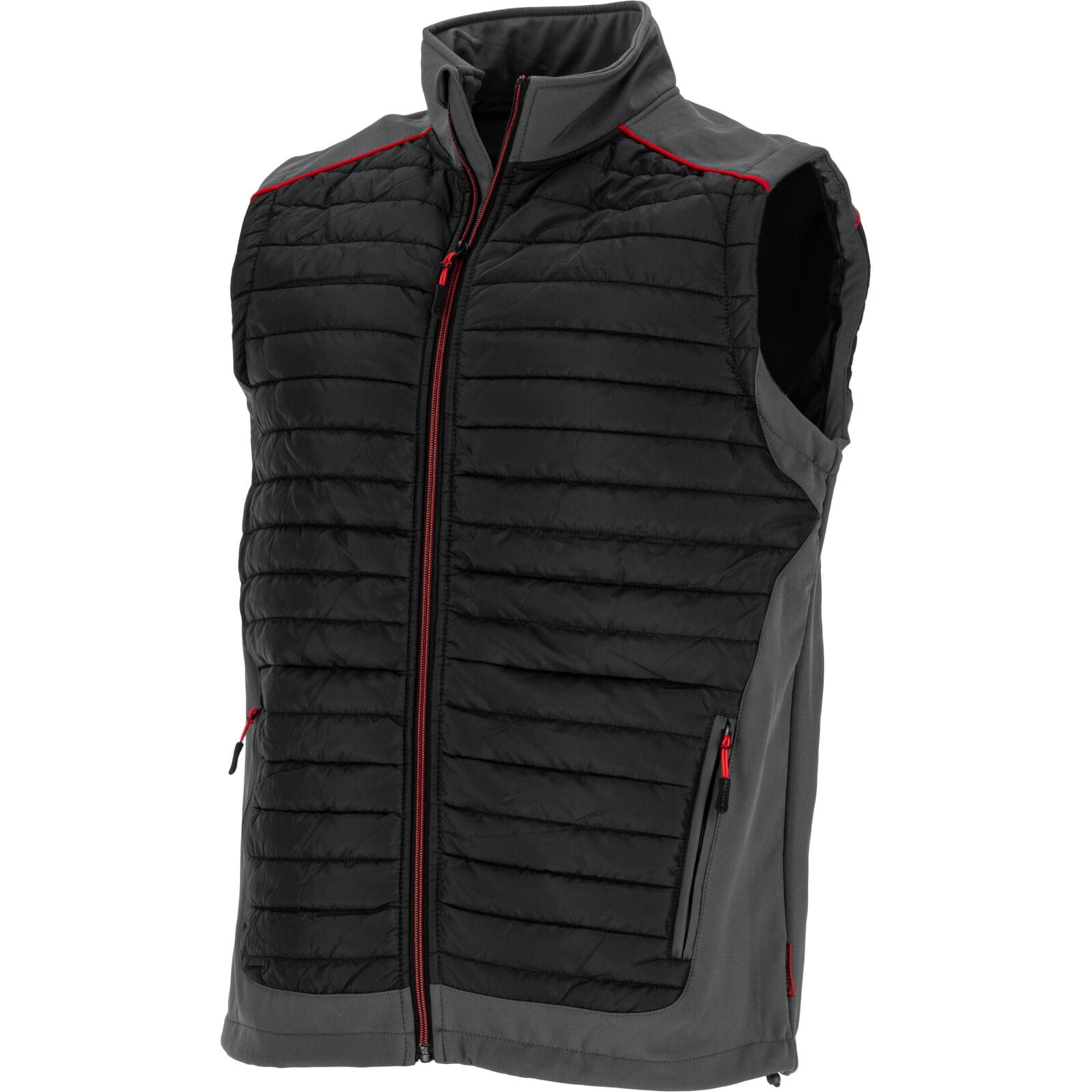 Bezrękawnik zapinany na zamek błyskawiczny. Osłona suwaka. Regulacja szerokości dołu kamizelki za pomocą specjalnego ściągacza.