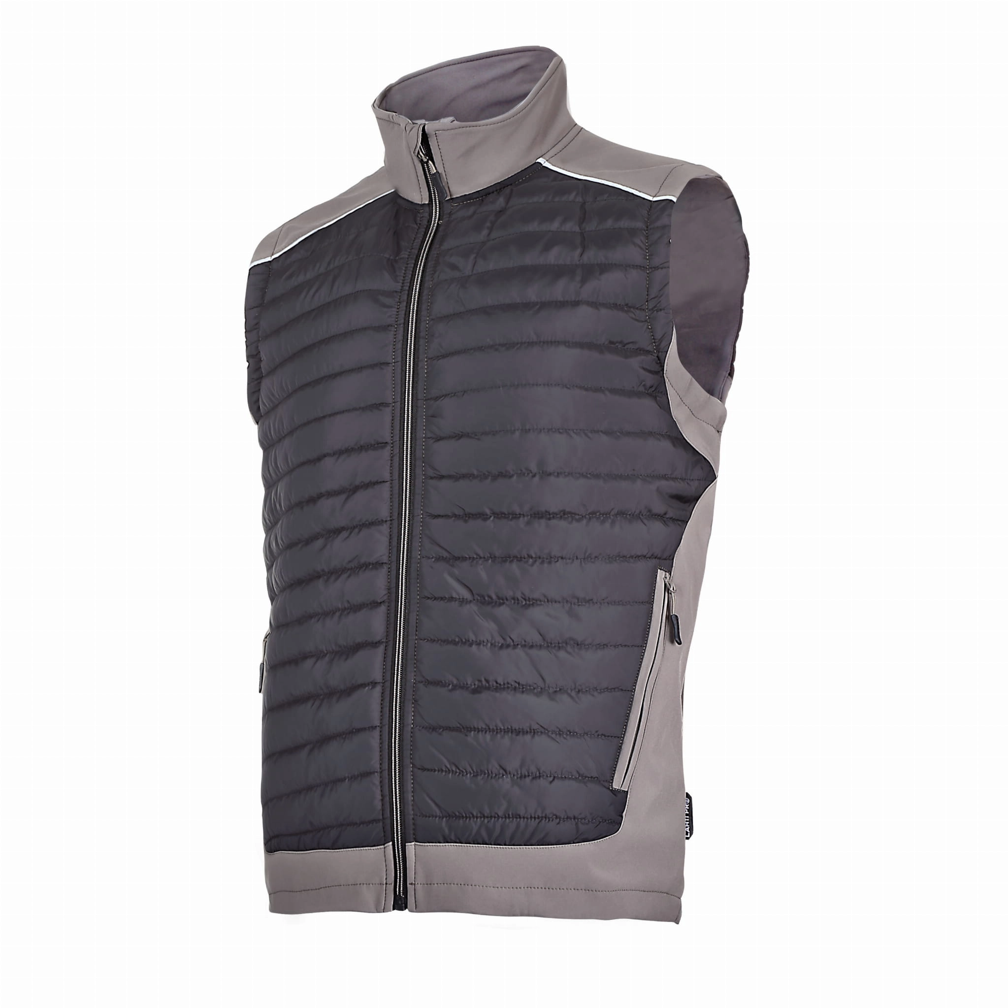 Bezrękawnik zapinany na zamek błyskawiczny. Osłona suwaka. Regulacja szerokości dołu kamizelki za pomocą specjalnego ściągacza.