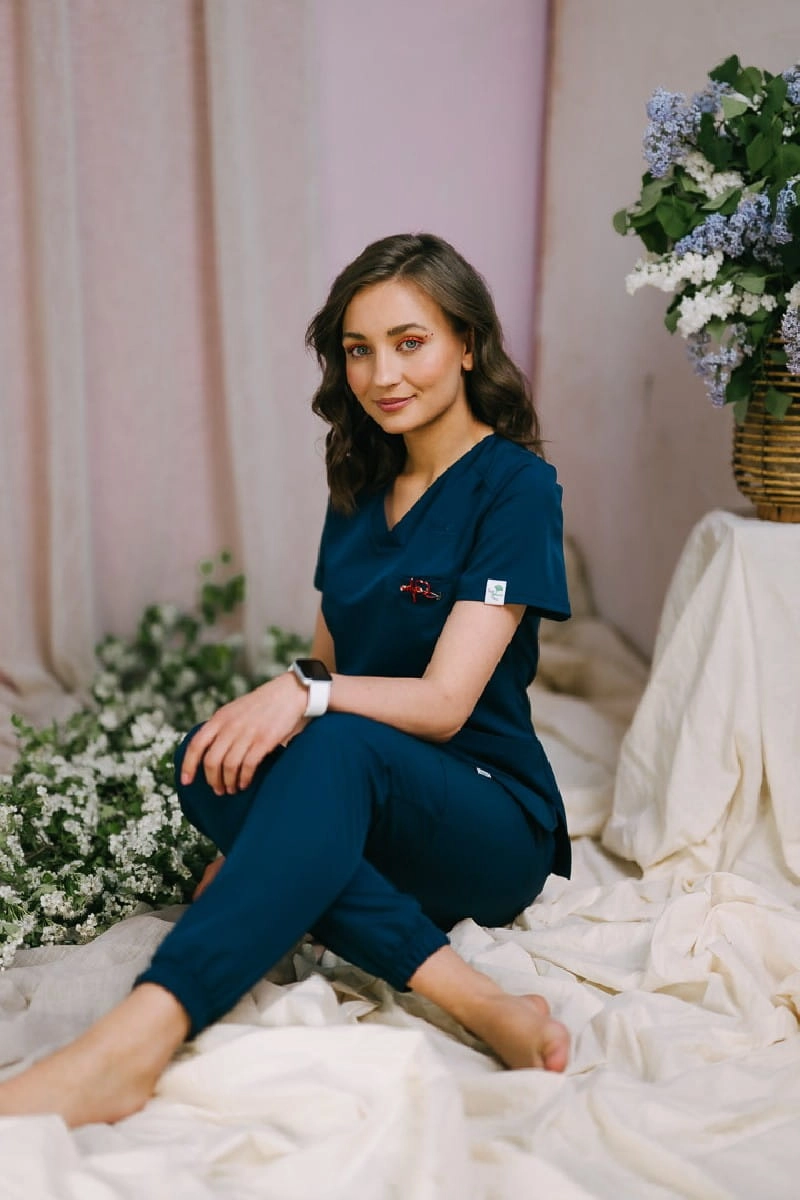 Bluza wykonana z lekkiego i elastycznego w czterech kierunkach materiału. Tkanina w dotyku jest lejąca i chłodnego co sprawdza się idealnego na ciepłe dni. Posiada trzy kieszenie, dekolt w serek, przeszycia na ramionach. Kieszenie są naszywane na wierzch bluzy i dodatkowo zabezpieczone ryglami. Górna kieszeń posiada dodatkowe przeszycie na długopis. Wygląd bluzy dopełniają detale w postaci przeszyć na dekolcie, ramionach, przy zakończeniach rękawków, na dole bluzy oraz kieszeniach. Górna kieszeń posiada wszytą pętelkę do której można przypiąć np. identyfikator. Rozporki na bokach bluzy zapewnią wygodę podczas siadania czy chodzenia. Bluza jest delikatnie taliowana co nadaje fasonowi kształt slim fit.