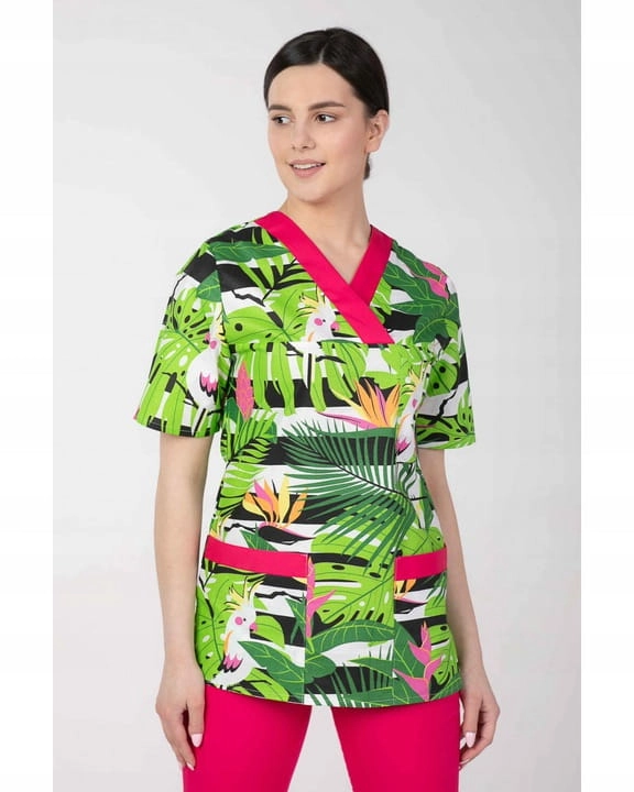 Bluza medyczna we wzory damska zielone liście M-074G MARTEX