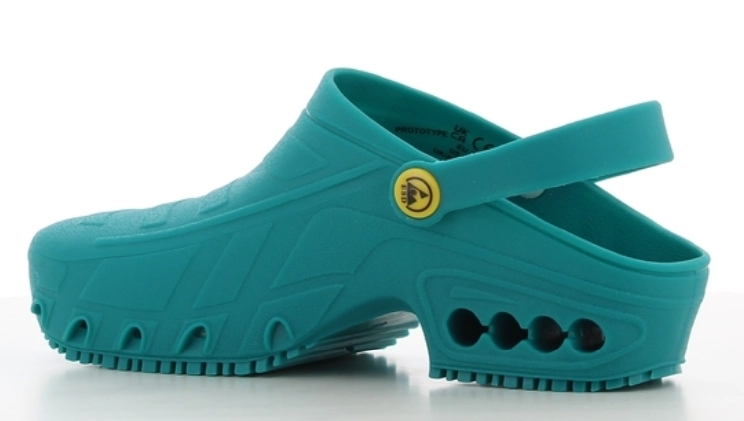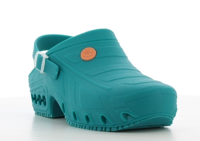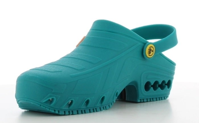 Oxyclog ma gumową podeszwę zewnętrzną, która zapewnia maksymalną przyczepność zarówno na mokrych, jak i suchych nawierzchniach i jest zgodna z normą antypoślizgową SRA. Chodak został specjalnie zaprojektowany do sali operacyjnej i można go sterylizować w wysokich temperaturach bez deformacji w autoklawie (w 135°C) i można go prać (90°C). Oxyclog posiada wkładkę antystatyczną, która ułatwia rozpraszanie elektryczności statycznej i jest zgodna z normą antystatyczną ESD. Pasek można nosić zarówno z przodu, jak i z tyłu, a jego regulacja umożliwia idealne dopasowanie buta do stopy.