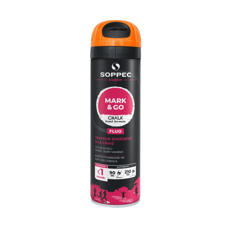 MARK & GO to krótkotrwała, wszechstronna, fluorescencyjna farba do znakowania na bazie kredy zaprojektowana do tymczasowego oznaczania, wyznaczania granic lub znakowania.