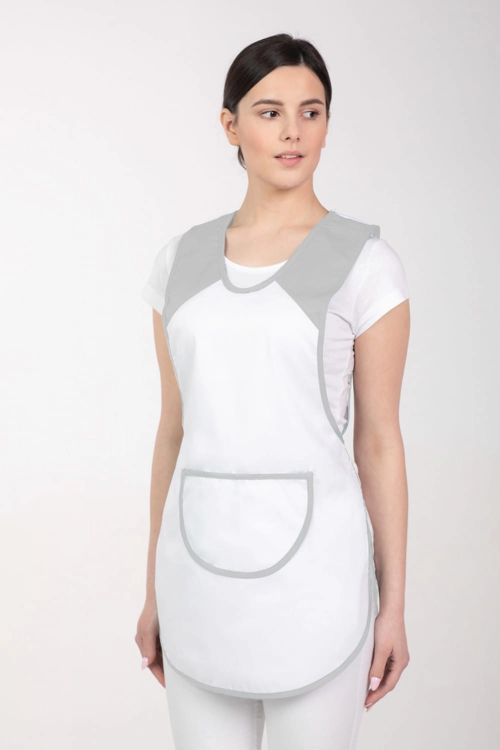 FARTUCH DAMSKI WIĄZANY NA BOKACH M-023A MARTEX BIAŁY Z SZARYM
