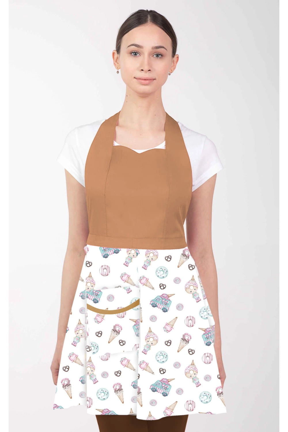 Fartuch przedni damski rozkloszowany w stylu sukienki.