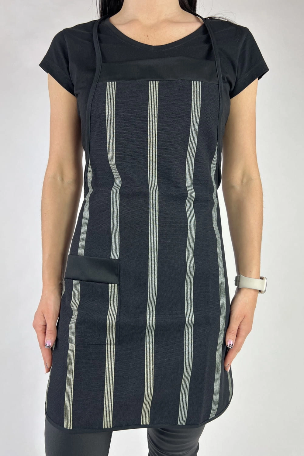 FARTUCH PRZEDNI Z KIESZONKĄ CZARNY PASKI MARTEX M-130W