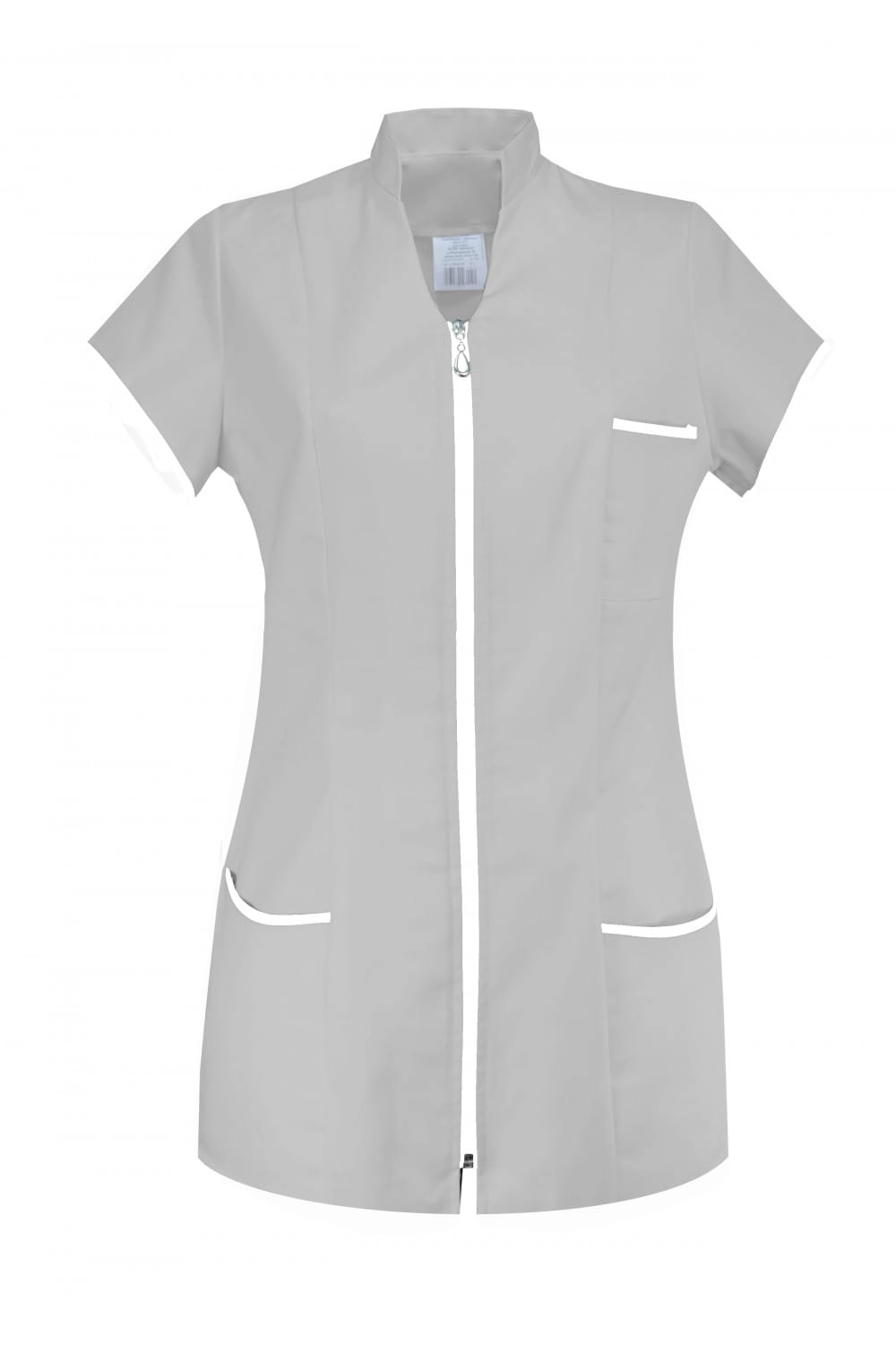 Krótki fartuch medyczny damski. Zapinany na zamek, wykończony stójką.