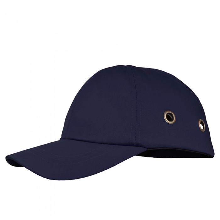 Lekki kask w formie czapki z daszkiem zabezpiecza przed spadającymi obiektami o niewielkiej sile uderzenia czy przed wystającymi elementami.