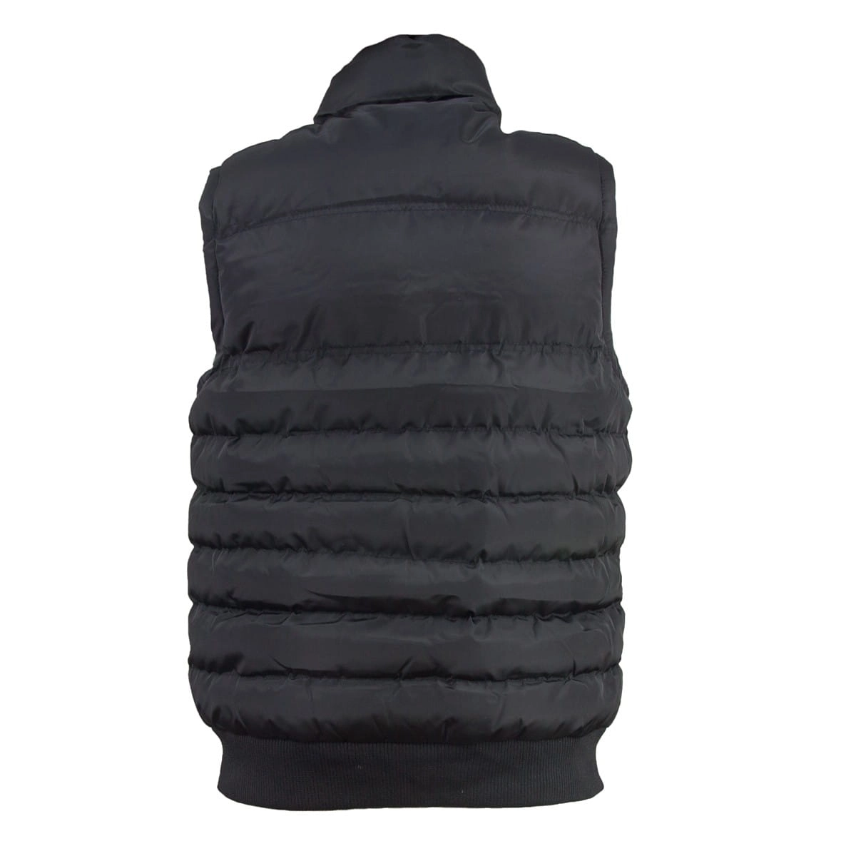 Pikowany ocieplany bezrękawnik w kolorze czarnym z zielonym wykończeniem w postaci suwaków. Podwyższony kołnierz z dodatkowo chroni szyję przed zimnem. Dół kamizelki zakończony został ściągaczem, dzięki czemu dopasowuję się do sylwetki oraz stanowi dodatkową ochronę przed wiatrem.