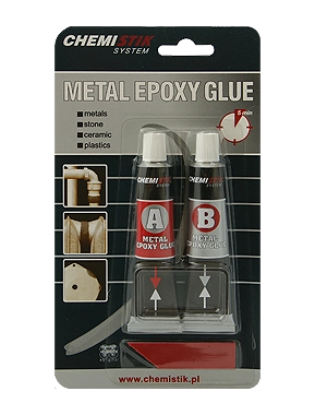 Metal Epoxy Glue jest szybko łączącym (5 min.) dwuskładnikowym klejem epoksydowym przeznaczonym do wypełniania ubytków w powierzchniach metalowych, ceramicznych oraz klejenia i uszczelniania. Doskonale wiąże metale, ceramikę oraz niektóre tworzywa sztuczne za wyjątkiem PP, PE, teflonu, pochodnych silikonów. Spoiny ze względu na dużą twardość nadają się do obróbki mechanicznej tzn. szlifowania, wiercenia itp. po pełnym utwardzeniu się spoiny. Do ewentualnego malowania spoin polecamy lakiery epoksydowe.