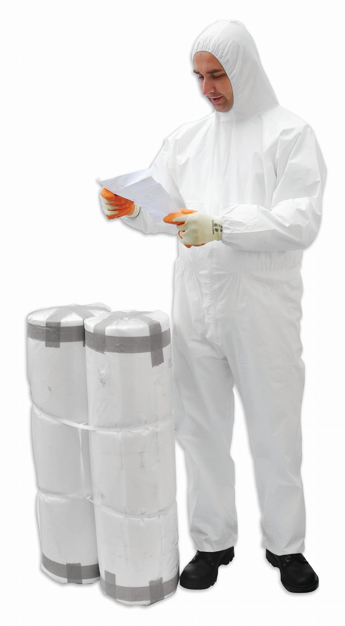Kombinezon o obszernej konstrukcji gwarantującej dobre dopasowanie bez ograniczania swobody ruchów i wydajności pracy. Jego materiał składa się z milionów włókien polietylenowych stanowiących doskonałą barierę dla cząstek stałych i płynnych. Oferuje wysoką wytrzymałość we wszystkich kierunkach. Posiada elastyczne wykończenia kaptura, kostek, mankietów i pasa, a także dwukierunkowy zamek błyskawiczny z przodu ukryty pod listwą.