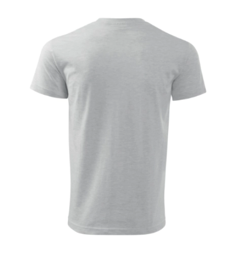 Klasyczna koszulka męska z wysokiej jakości, oddychającej tkaniny bawełnianej. Materiał jest miękki w dotyku. Koszulka nie posiada szwów bocznych dzięki czemu jest wyjątkowo komfortowa podczas noszenia. Na ramionach taśma wzmacniająca, która przedłuża trwałość koszulki. Przy szyi wąska lamówka, która zapewnia lepsze dopasowanie.