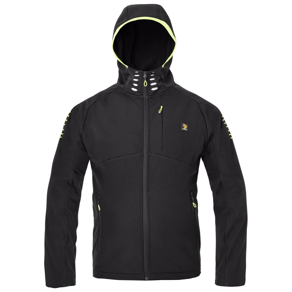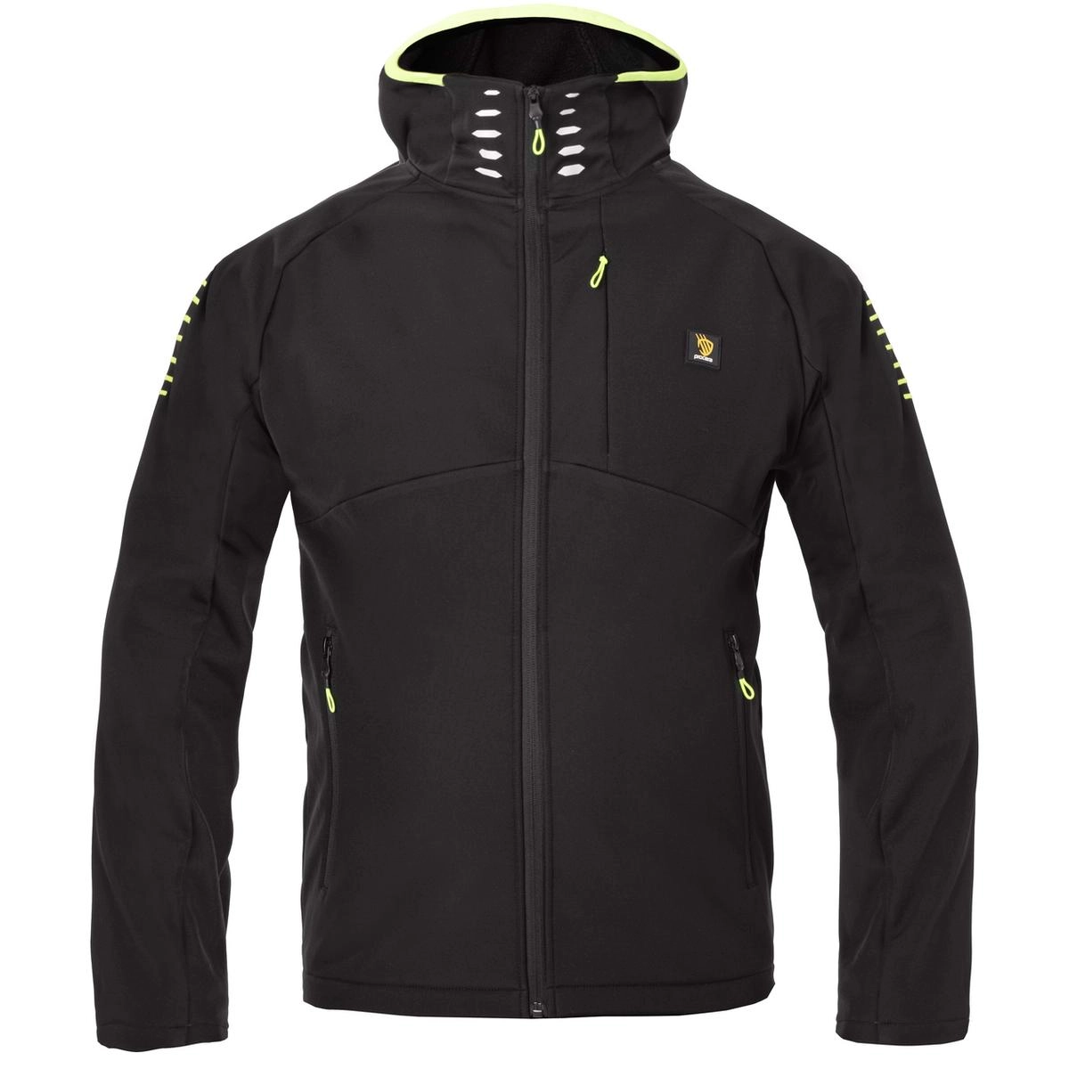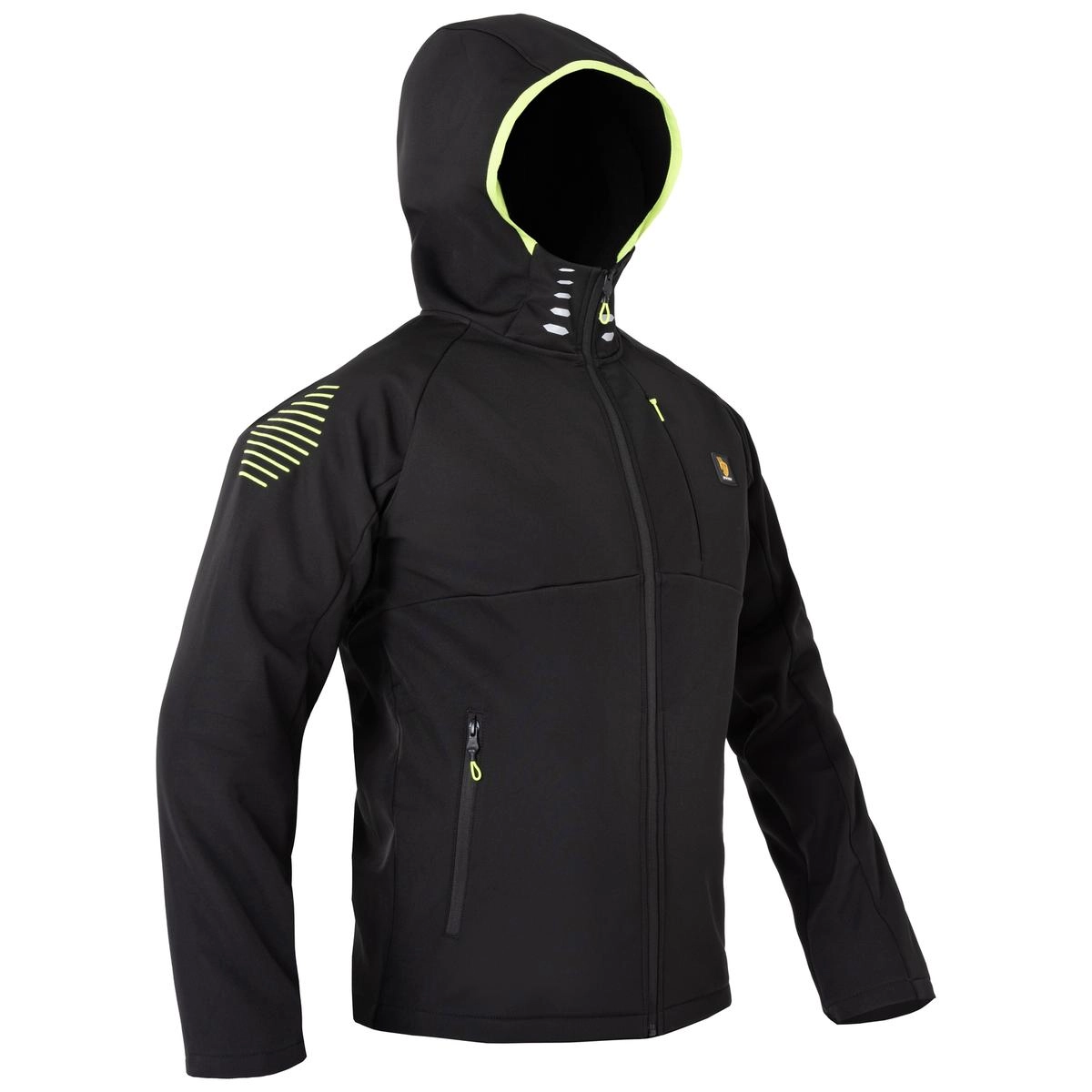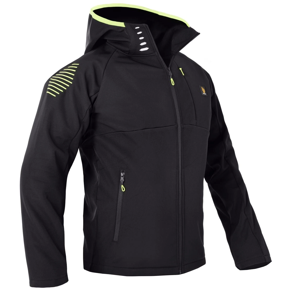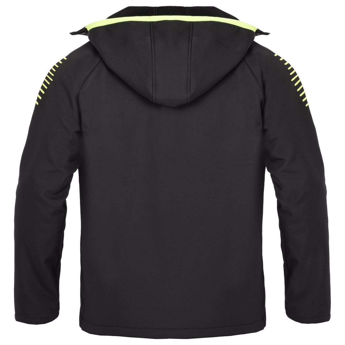 Kurtka wielosezonowa męska w kolorze czarnym z neonowymi wstawkami z polarowym wykończeniem od wewnątrz. Softshell doskonale sprawdza się w warunkach chłodu, wiatru i wilgoci.
