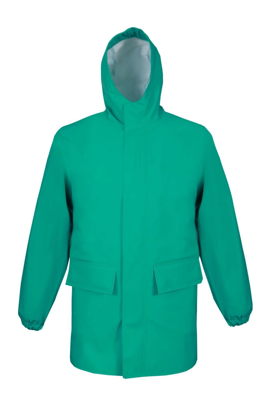 Kurtka z kapturem zapinana na zamek przykryty plisą, produkowana z chemoodpornej tkaniny Plavitex Chemo. Posiada rękawy zakończone gumą w tunelu co dodatkowo chroni przed substancjami chemicznymi. Przeznaczona do stosowania w różnego rodzaju zakładach, gdzie mozliwy jest kontakt z kwasami i zasadami. Technika obustronnego zgrzewania zwiększa wytrzymałość szwów. Produkt spełnia standardy europejskich norm: EN ISO 13688, EN 343, EN 13034.