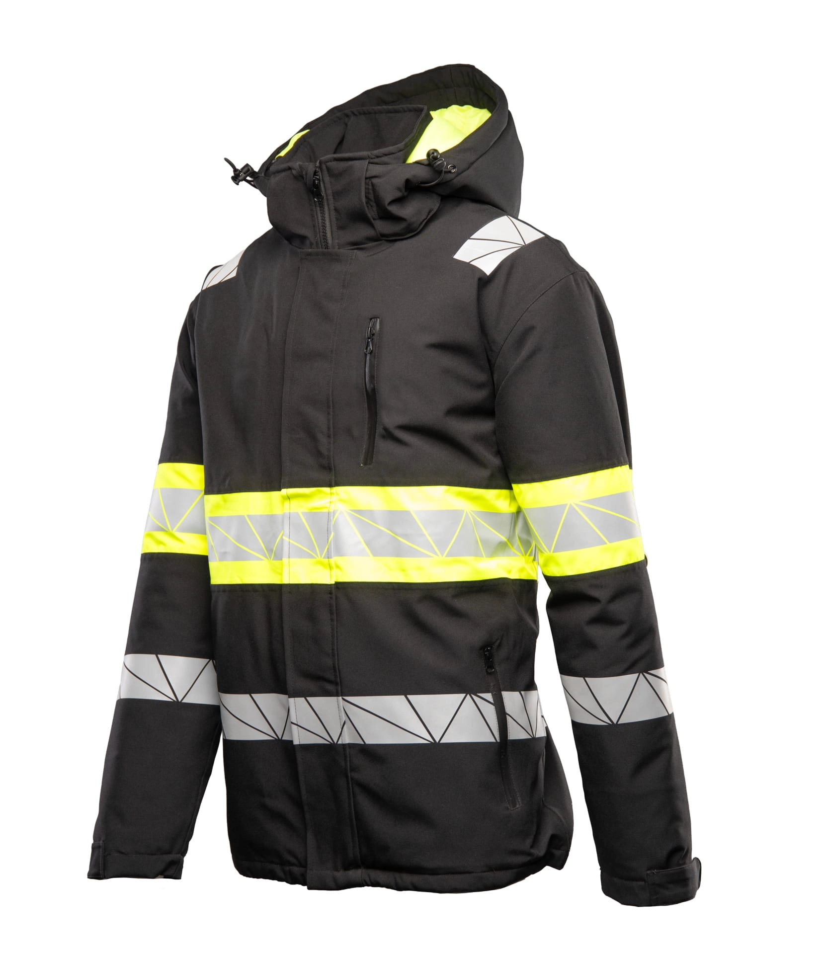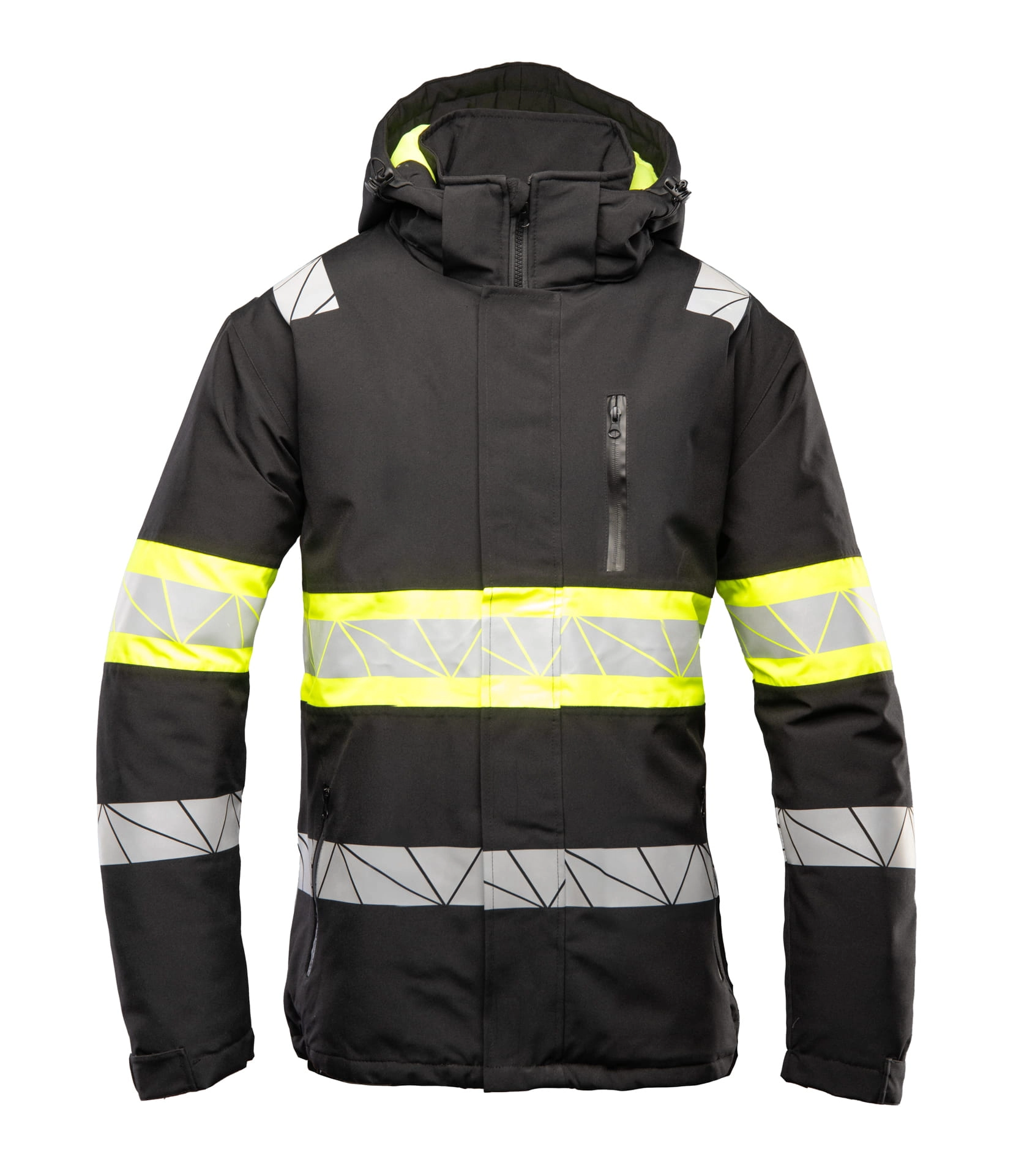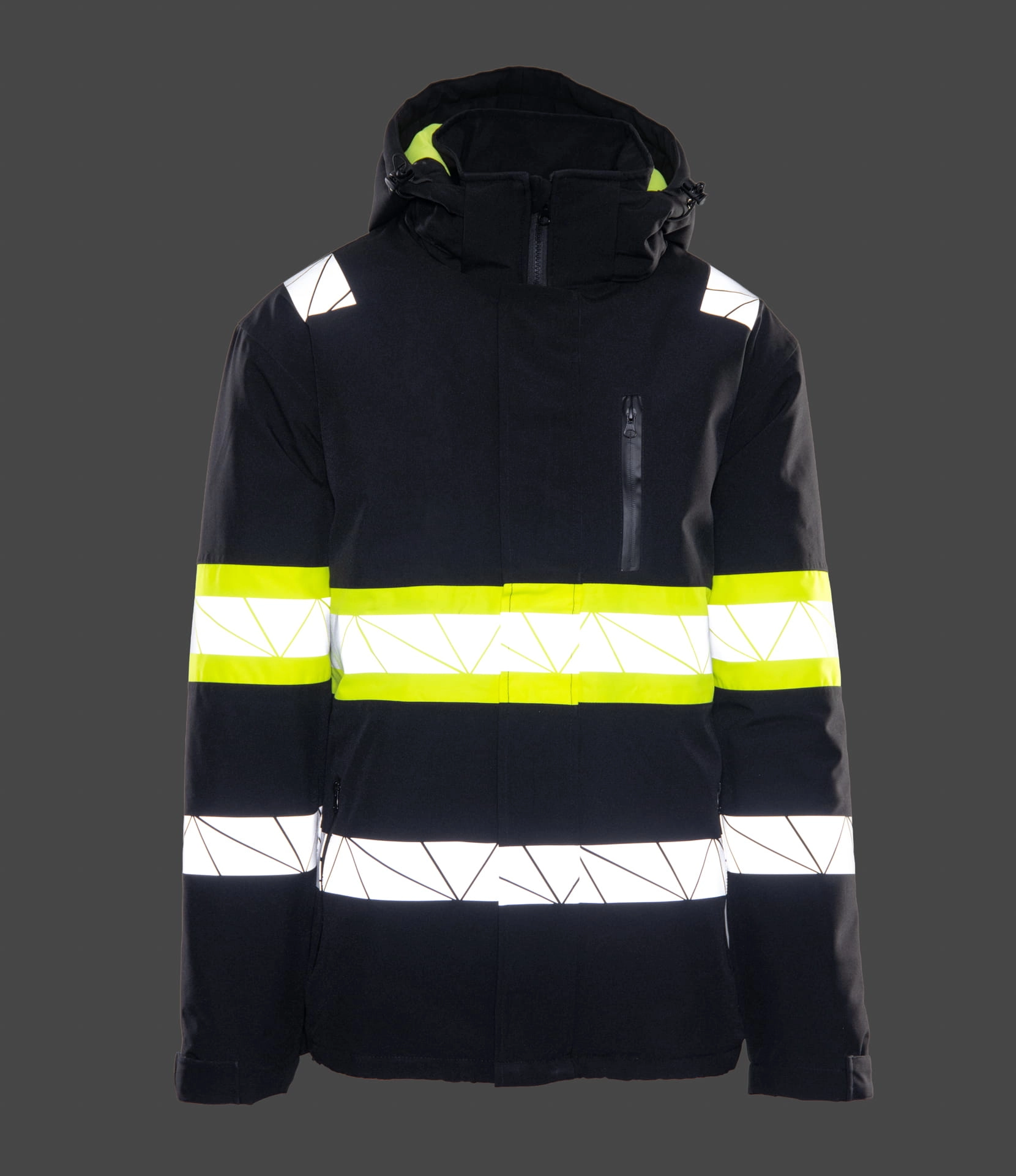 Bardzo ciepła kurtka zimowa męska z kontrastowymi wstawkami i elementami odblaskowymi.
