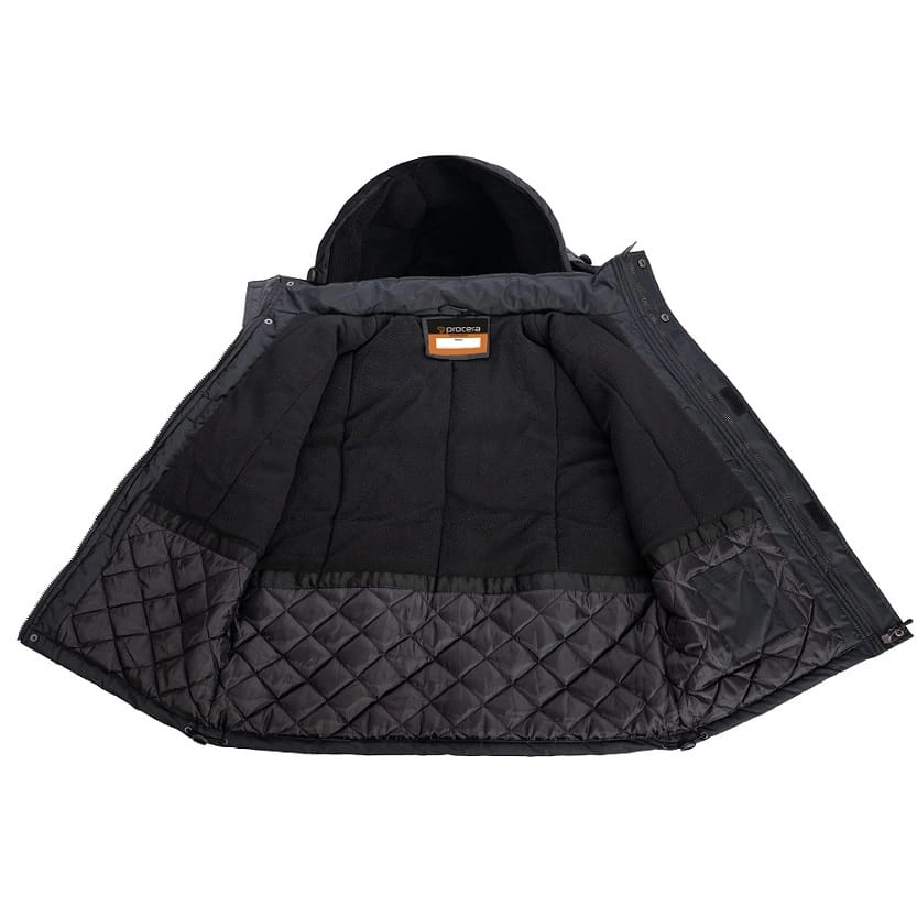 Odsuwany kaptur, ocieplany polarem, ściągany za pomocą troczków, posiada dodatkowe zapięcie na rzep dzięki czemu głowa jest lepiej chroniona przed zimnem i warunkami atmosferycznymi.