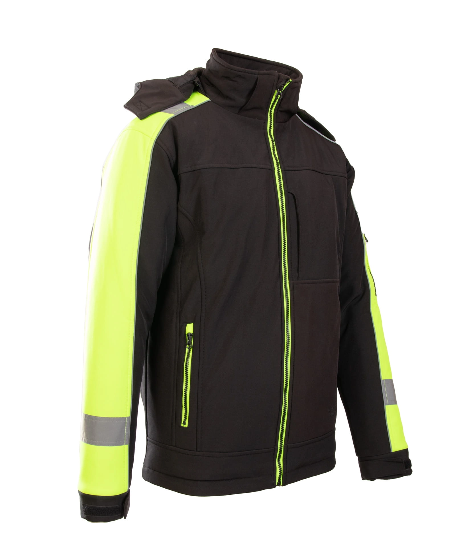 Kurtka męska z kontrastowymi wstawkami i elementami odblaskowymi.