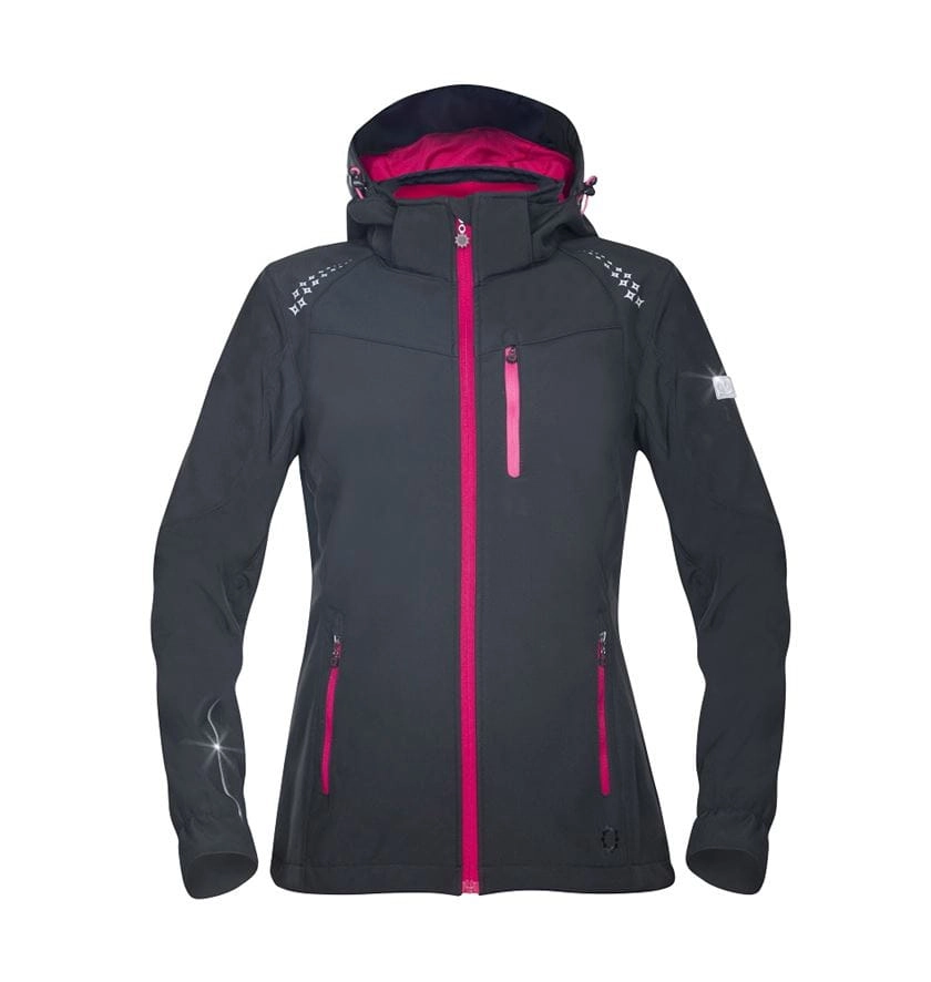 Kurtka z kontrastowymi wstawkami i elementami odblaskowymi.