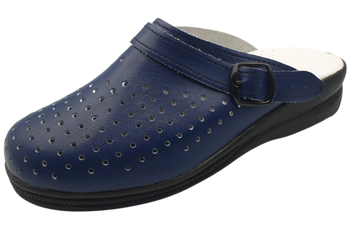 Sabot damski wykonany ze skóry naturalnej, na profilowanym wkładzie zapewniającym odpowiedni komfort stopy.