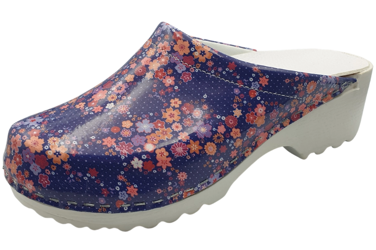 Obuwie typu clogs, na elastycznej przeciwpoślizgowej, odpornej na substancje chemiczne podeszwie. Cholewka wykonana ze skóry naturalnej powlekanej.