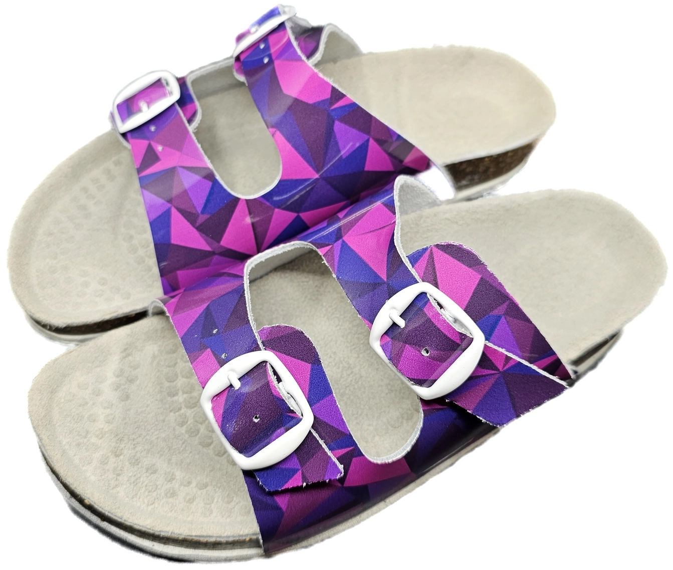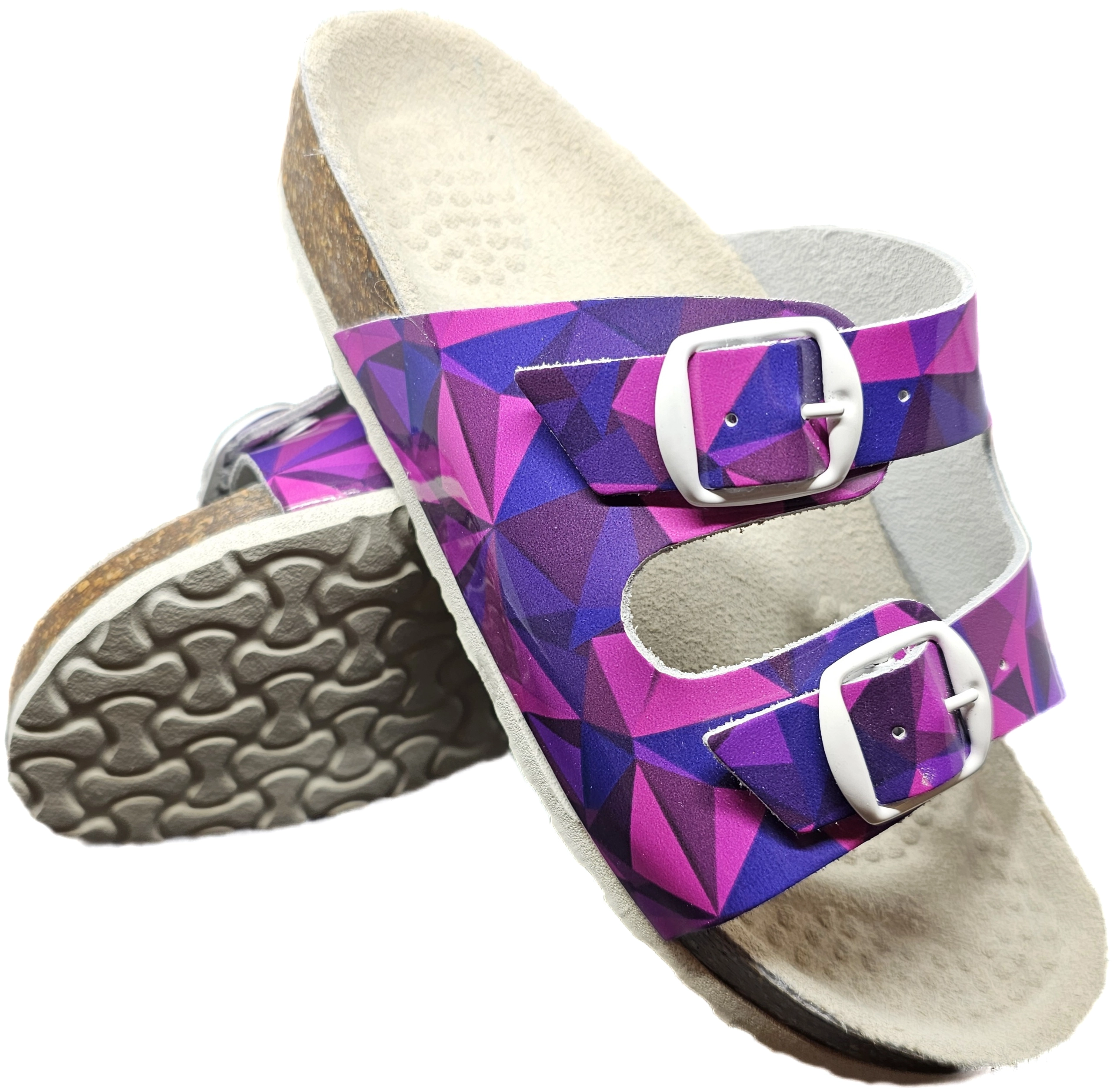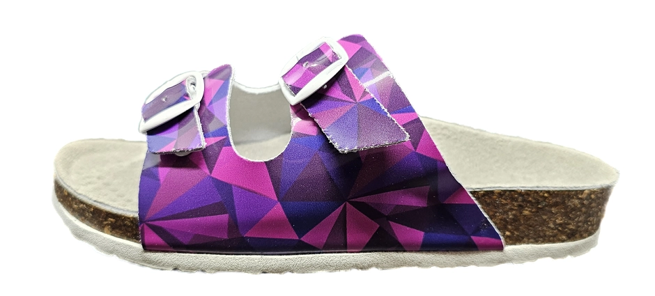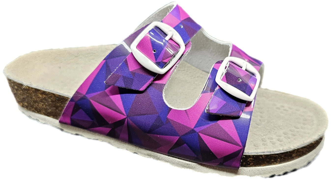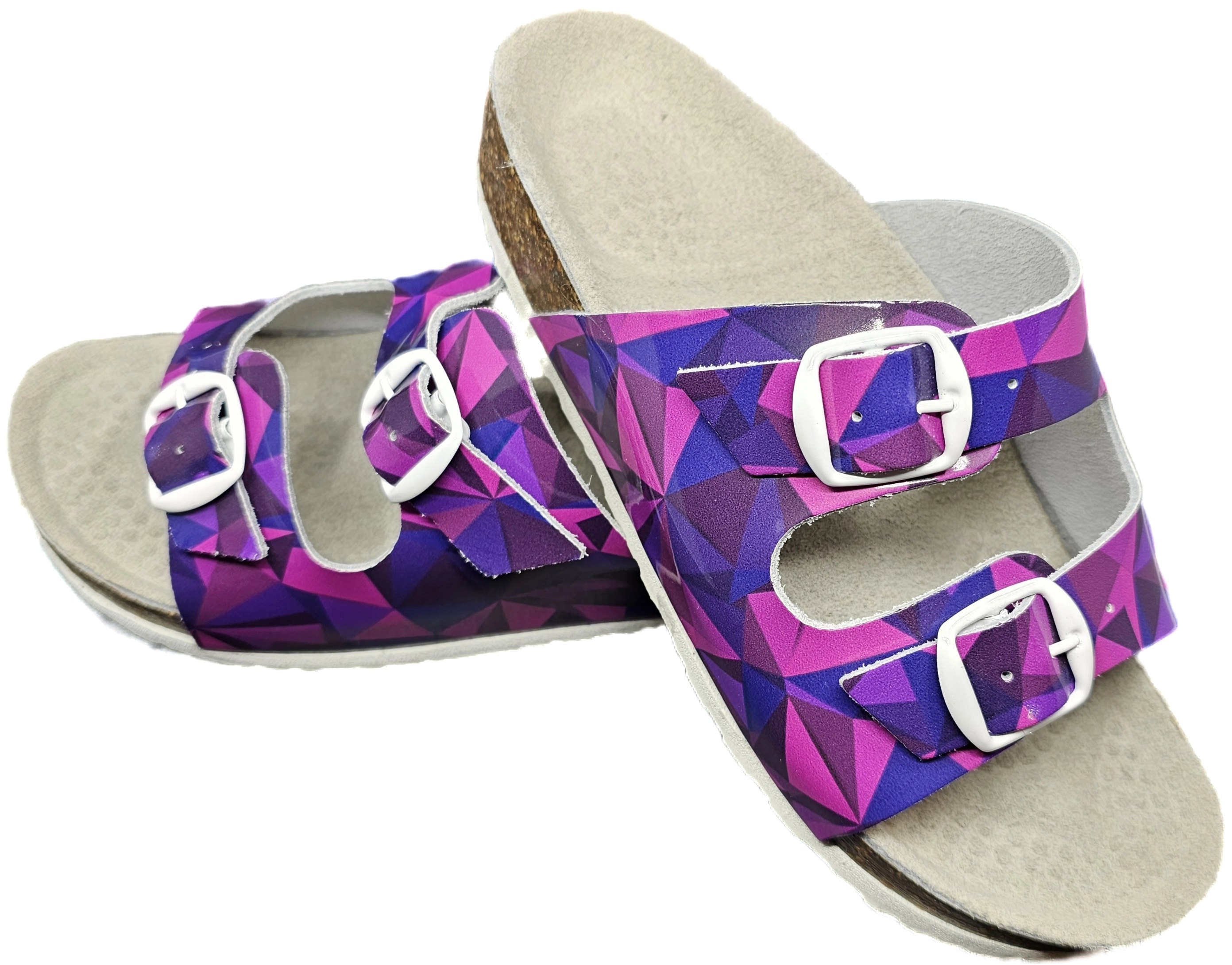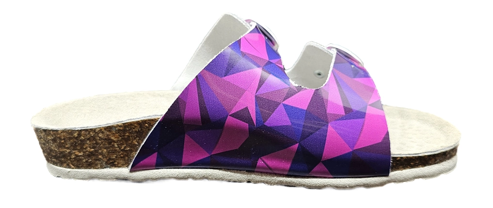 Klapki damskie wykonany ze skóry naturalnej, z regulacją tęgości, na profilowanym wkładzie z mieszanki korkowo-gumowej typu "BIO" pokrytej naturalną skórą zapewniającym odpowiedni komfort stopy.