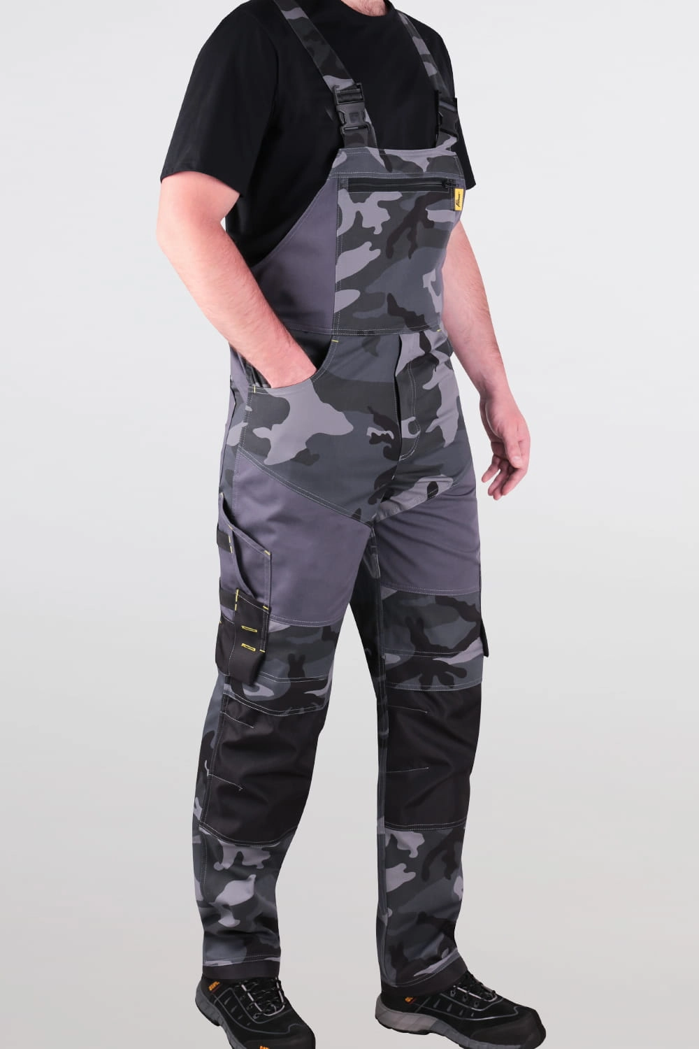 - wygodne ogrodniczki moro ze wzmocnieniami