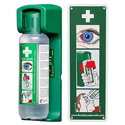 Płukanka do oczu Cederroth 7251 o pojemności 500 ml z uchwytem ściennym Cederroth 7200 to praktyczne rozwiązanie do przechowywania płukanek. Uchwyt ścienny zapewnia umieszczenie butelki z płukanką w określonym i znanym przez wszystkich miejscu. Butelka pozostaje zatrzaśnięta w uchwycie, a wyjęcie jej z niego powoduje jej automatyczne otwarcie - natychmiast można rozpocząć płukanie oka. Można ją wstawić na kilka różnych sposobów i dlatego pasuje na każdym stanowisku pracy i w każdym pomieszczeniu.
