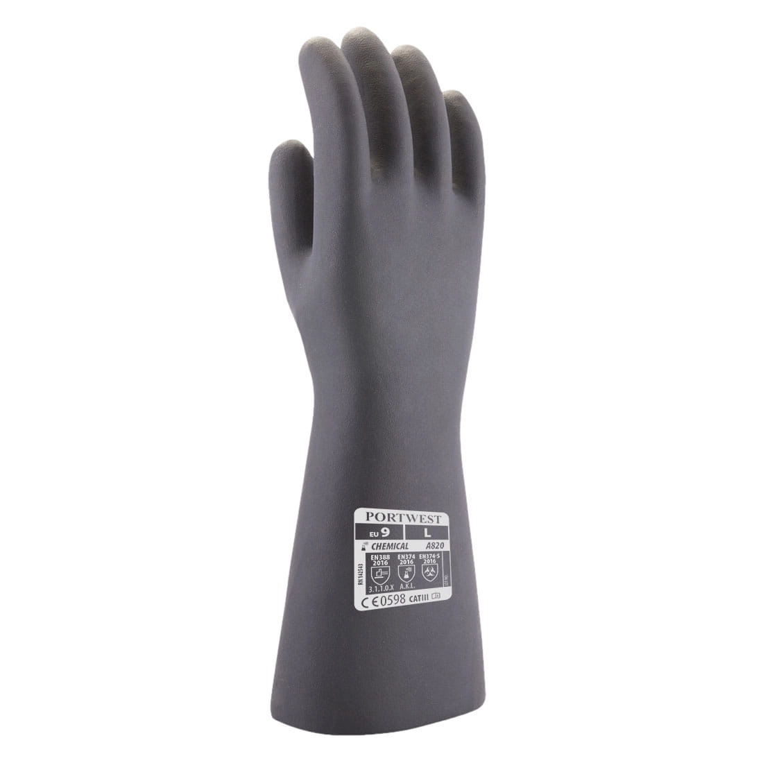 Rękawica z kauczuku neoprenowego o długości 38 cm zapewniająca ochronę przed szeroką gamą kwasów, substancji żrących, alkoholi i wielu rozpuszczalników. Antypoślizgowy wzór na wewnętrznej części dłoni zapewnia dobrą przyczepność na mokrej i suchej nawierzchni. Bawełniany flock bardzo dobrze pochłania pot.