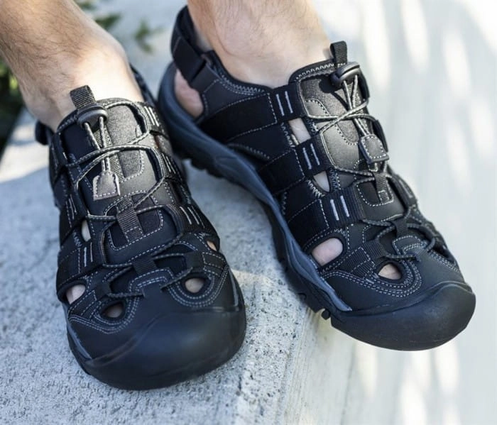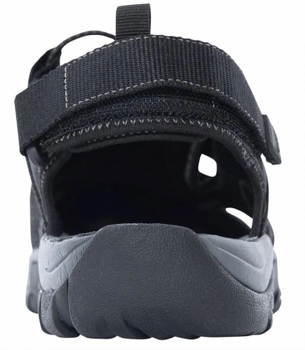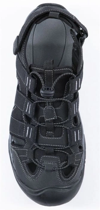 Sandał trekkingowy z pełnym noskiem i cholewką z tkaniny. Możliwość regulacji na pięcie za pomocą paska. Obuwie jest wyposażone w sznurek do regulacji szerokości oraz pętlę ułatwiającą zakładanie obuwia.
