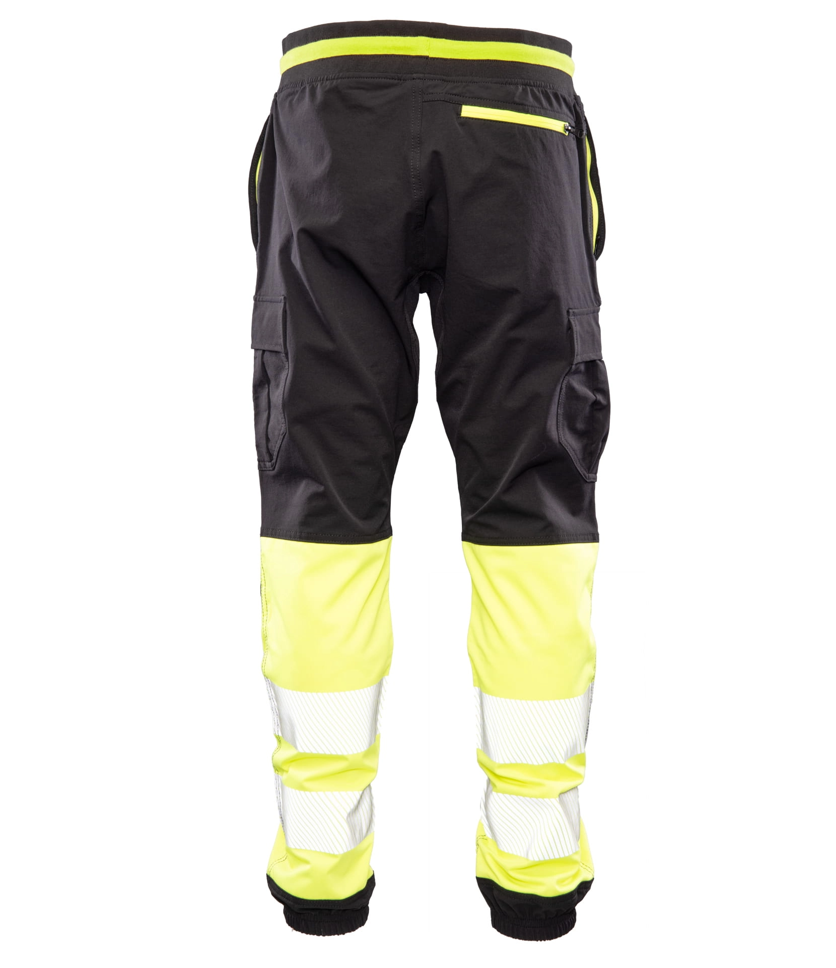 Praktyczne, trwałe i bardzo wygodne oraz elastyczne spodnie robocze, które nie krępują ruchów. Dodatkowo poprawiają widoczność użytkownika, dzięki zastosowaniu wstawek w ostrzegawczym kolorze na dole nogawek z pasami odblaskowymi.