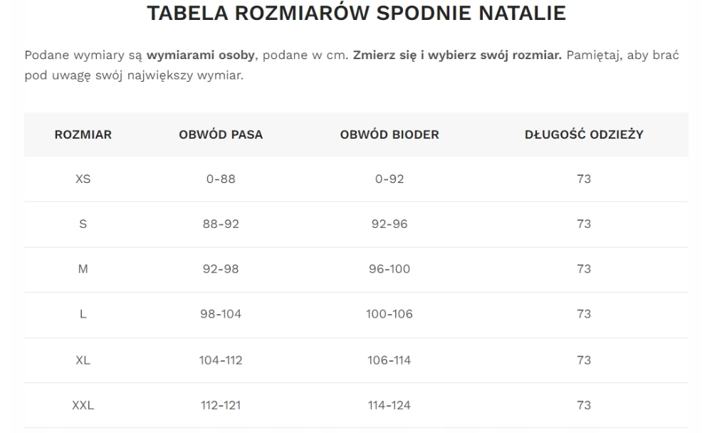 - Guma wokół pasa wszyta tak aby podczas użytkowania pozostała na swoim miejscu