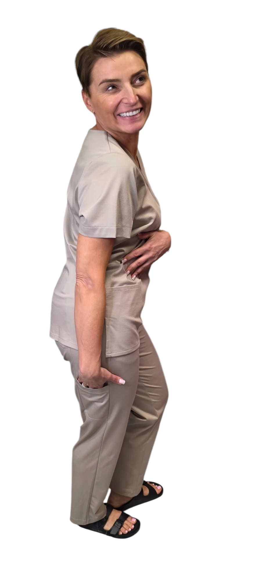 Eleganckie spodnie medyczne zaprojektowane i uszyte w Polsce.