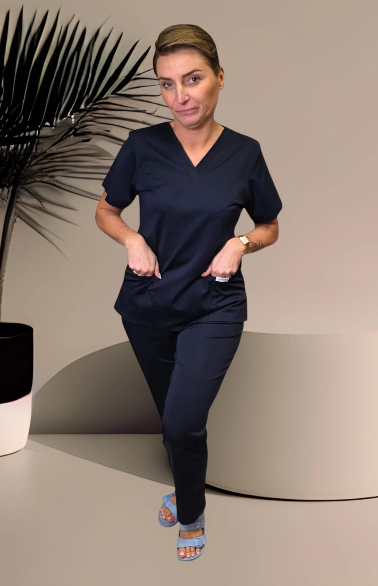 Eleganckie spodnie medyczne zaprojektowane i uszyte w Polsce.