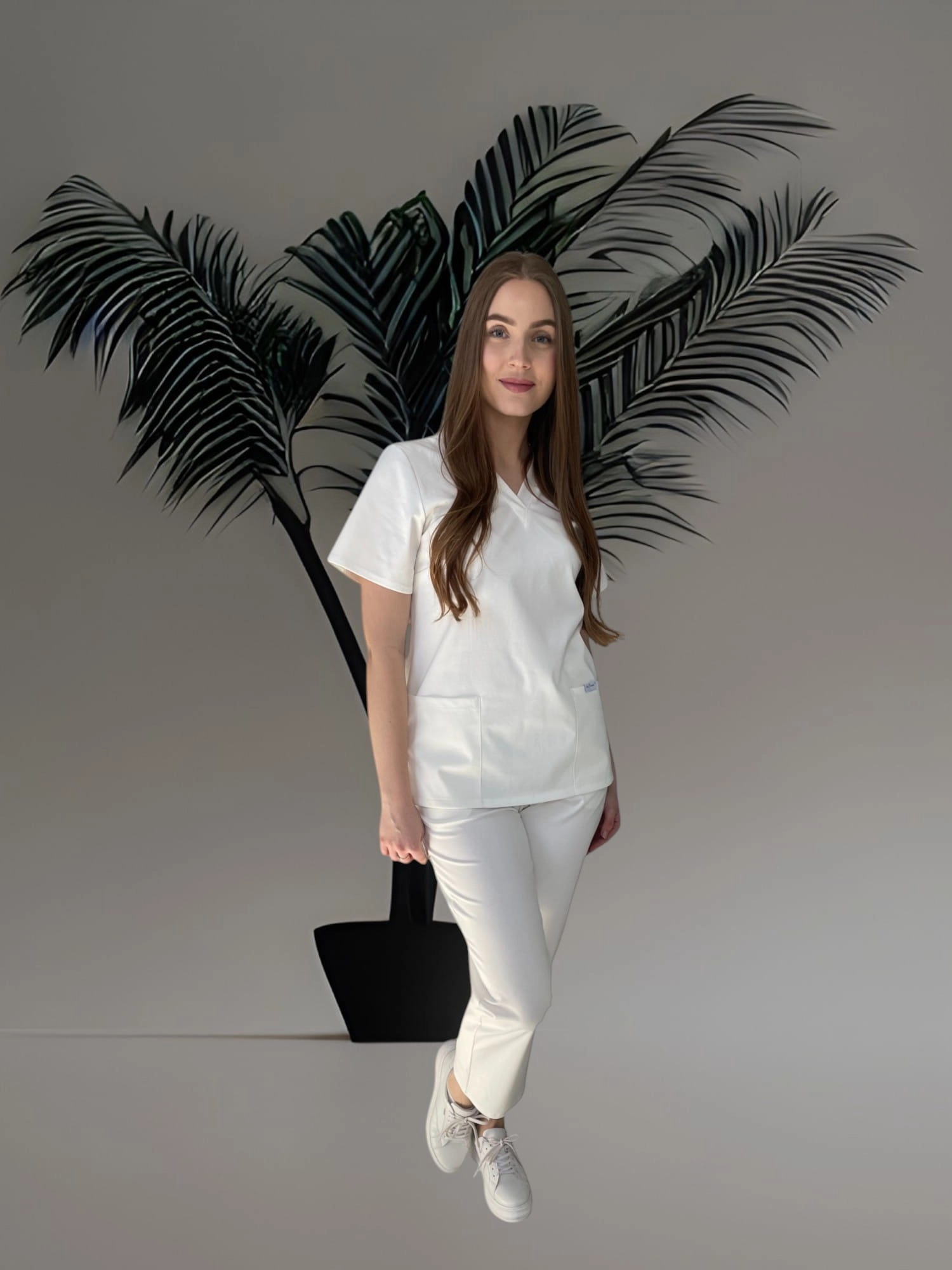 Eleganckie spodnie medyczne zaprojektowane i uszyte w Polsce.