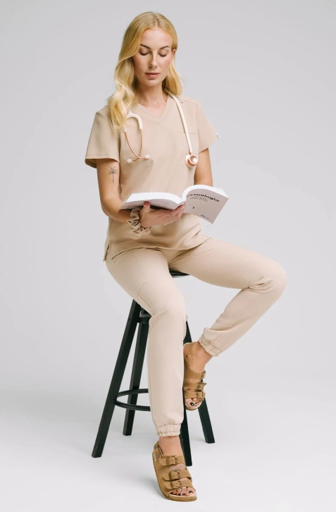 SPODNIE MEDYCZNE DAMSKIE JOGGERY NATALIE+ VISCON BEŻOWE