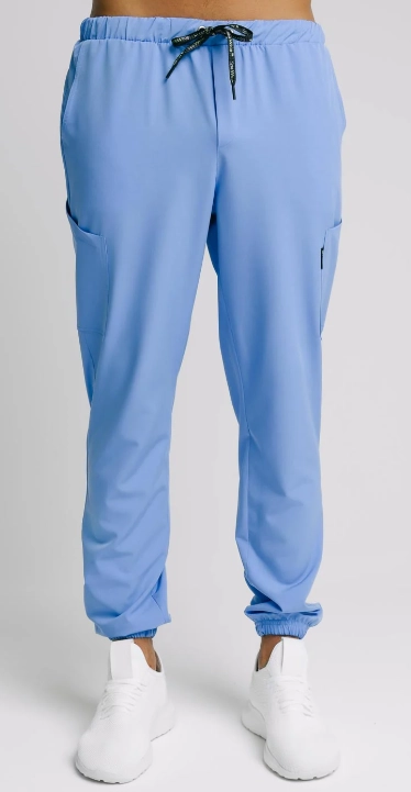 Spodnie wykonane z lekkiego i elastycznego w czterech kierunkach materiału. Tkanina w dotyku jest lejąca i chłodnego co sprawdza się idealnego na ciepłe dni. Posiadają sześć kieszeni, gumę i sznurek w pasie. Kieszenie mają skośny kształt a przy tym są duże, tak aby zmieścić bez problemu stetoskop czy smartfona. Każda kieszeń zabezpieczona jest specjalistycznymi ryglami. Guma w pasie jest bardzo rozciągliwa. Ozdobny sznurek z metalowymi końcówkami przyszyty z tyłu do paska, zapobiega wypadaniu sznurka. Wygląd spodni dopełniają detale w postaci przeszycia na kieszeniach oraz przy dolnych gumach.