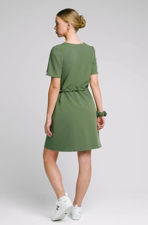 Wygodna i funkcjonalna sukienka medyczna w sportowym stylu uszyta z wysokogatunkowej i miękkiej tkaniny “Viscon” z bogatą zawartością splotów wiskozy.