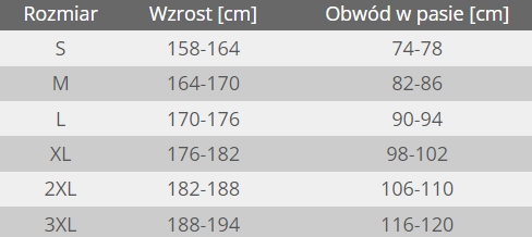 - Możliwość wydłużenia nogawek (+2,5 cm)