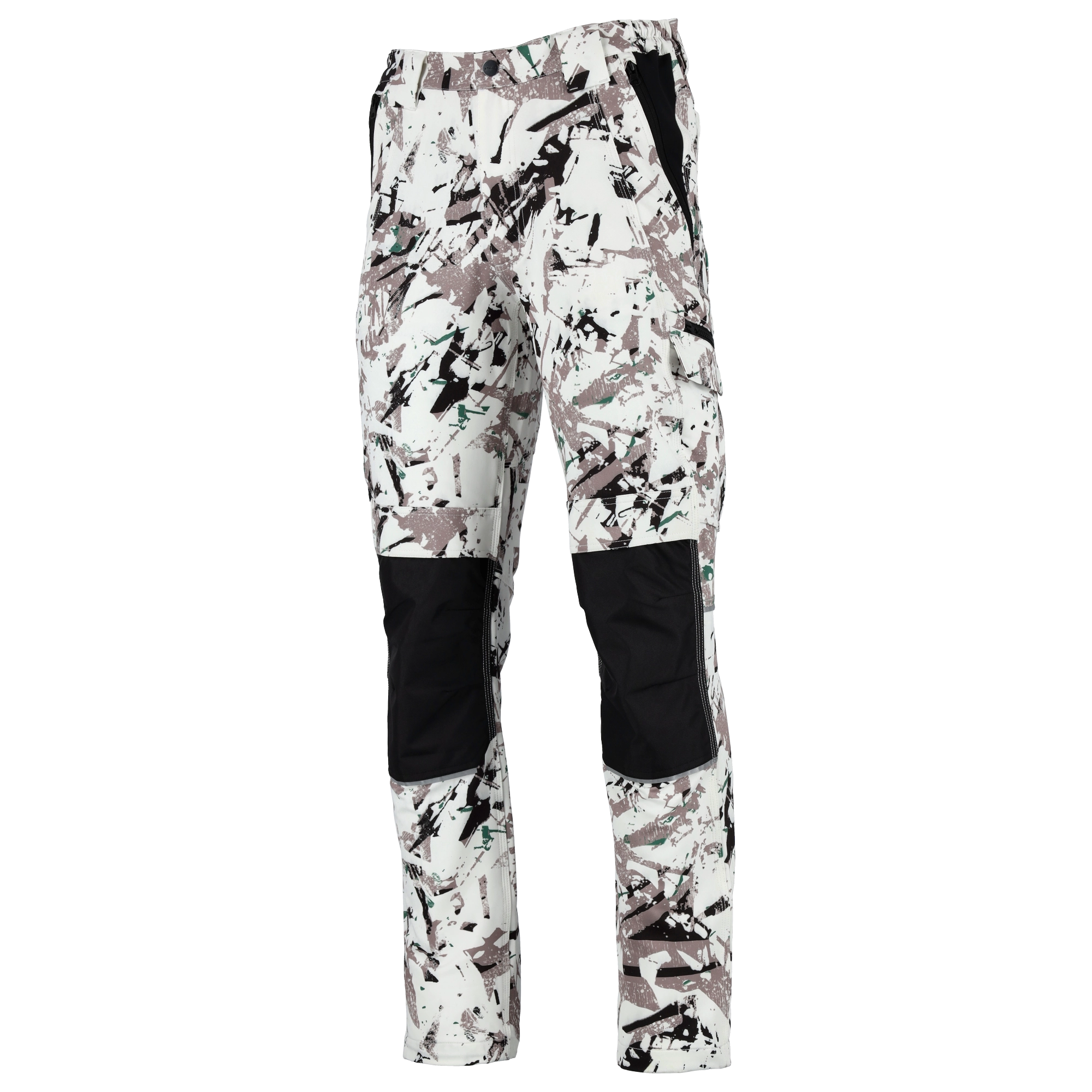 Funkcjonalne kieszenie. W czasie wykonywania pracy, niewielkie przedmioty i narzędzia można umieścić w funkcjonalnych kieszeniach. Nie jest ich dużo ze względu na trekkingowy charakter spodni, jednak wystarczająco, by mieć przy sobie wszystko, co niezbędne do pracy. Po bokach kieszeń na narzędzia, duża z klapką i nad nią druga na zamek. W obrębie pasa są 2 naszywane kieszenie z tyłu oraz 2 bardzo pojemne kieszenie z przodu, zapinane na zamek. W pracy w wymuszonych pozycjach są niezastąpione kieszenie na kolanach na wkładki piankowe, z wytrzymałego na rozdarcia materiału oxford.