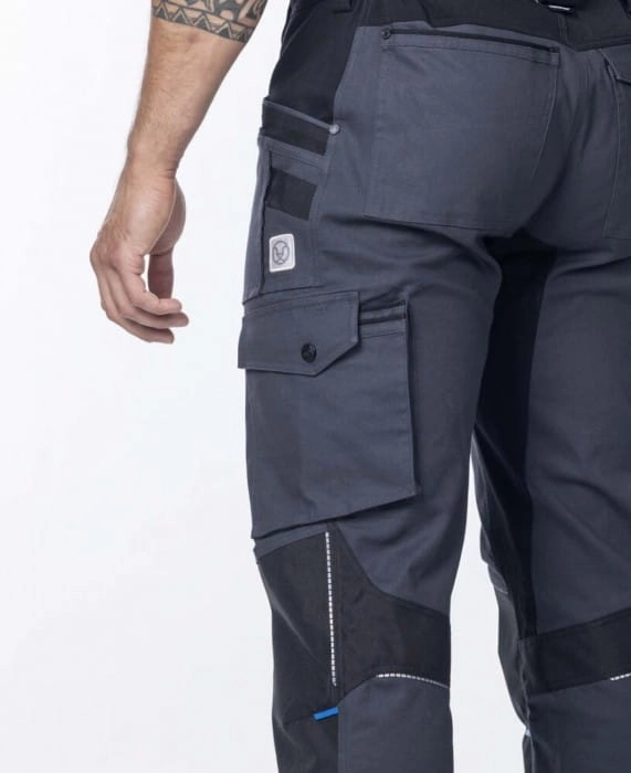Spodnie robocze stretch do pasa z kieszeniami na nakolanniki ze specjalnego materiału Amalytton®, zapewniającego zwiększoną wytrzymałość i odporność tkaniny bawełnianej przy zachowaniu elastyczności i wszystkich zalet naturalnego materiału, takich jak oddychalność i komfort użytkowania.