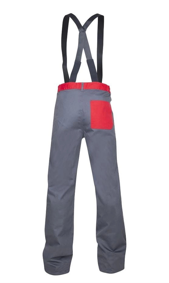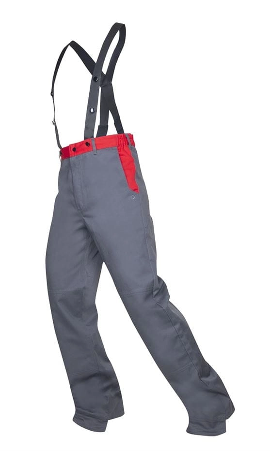 Dodatkowe szelki elastyczne, zapinanie na suwak i guzik, podwójny materiał w okolicach kolan narażonych na obciążenie, osłona obuwia, przeznaczone do noszenia razem z bluzą spawalniczą.
