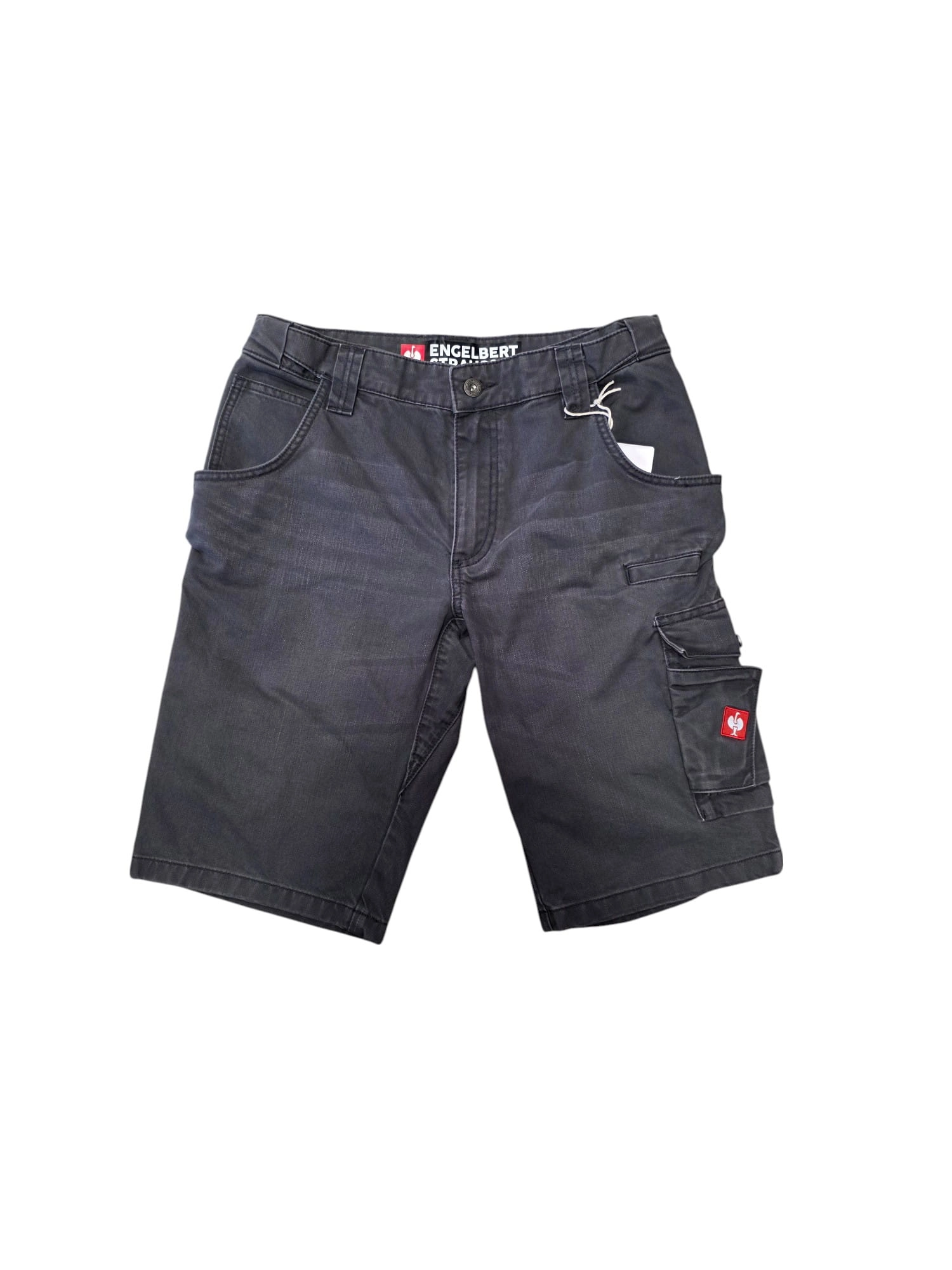 Spodenki robocze wykonane z jeansowego materiału o uniwerslanym kroju cargo z prostymi nogawkami i elastycznym pasem. Zapięcie na guzik i zamek błyskawiczny z podszyciem.