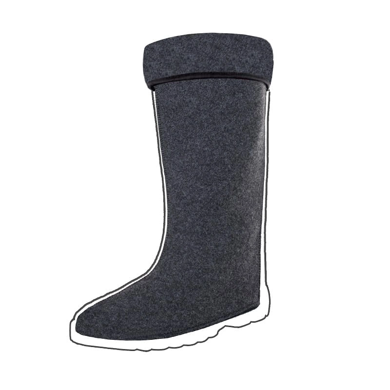 Ocieplające, wysokie wkłady do obuwia, w kształcie skarpety, wywijane w górnej części, w całości wykonane z włókniny filcowej. Usztywniona podeszwa ułatwiająca komfortowe ułożenie wkładu wewnątrz obuwia. Odpowiednie m.in. do obuwia EVA GLOBAL, TRACKER, LARIS. Średnia wysokość wkładu 40 cm (wysokość może nieznacznie różnić się w zależności od rozmiaru).